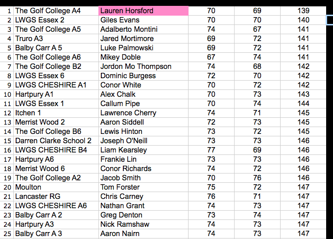 Lauren Horsford ( The Golf College) took the individual trophy with scores of 70+69