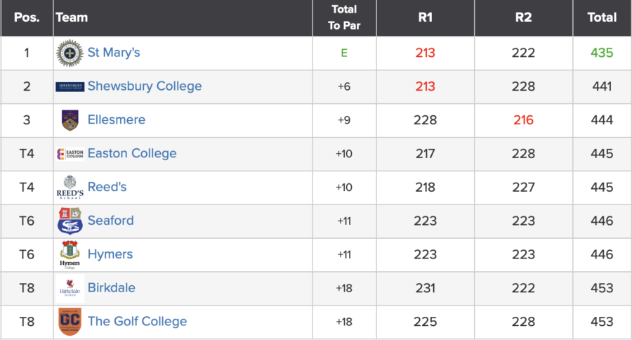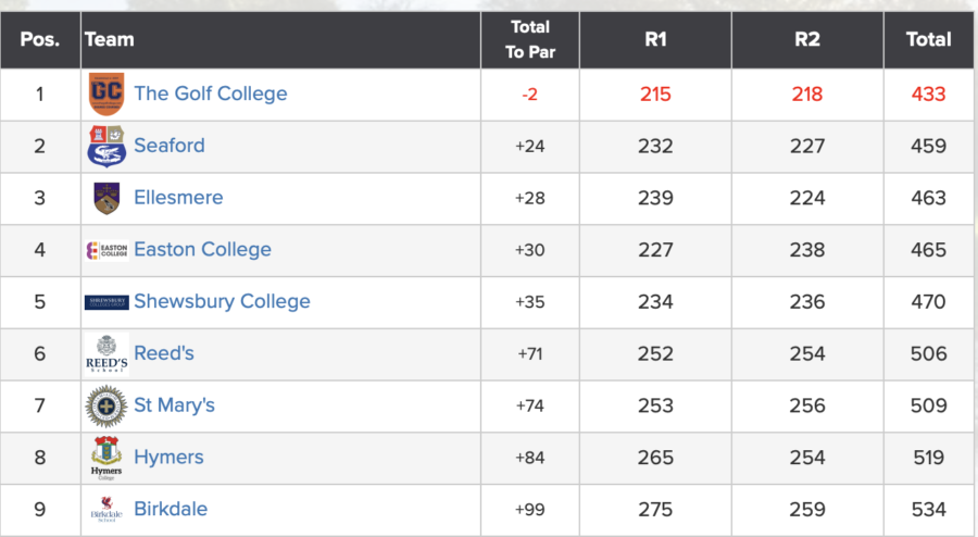 Team gross scores