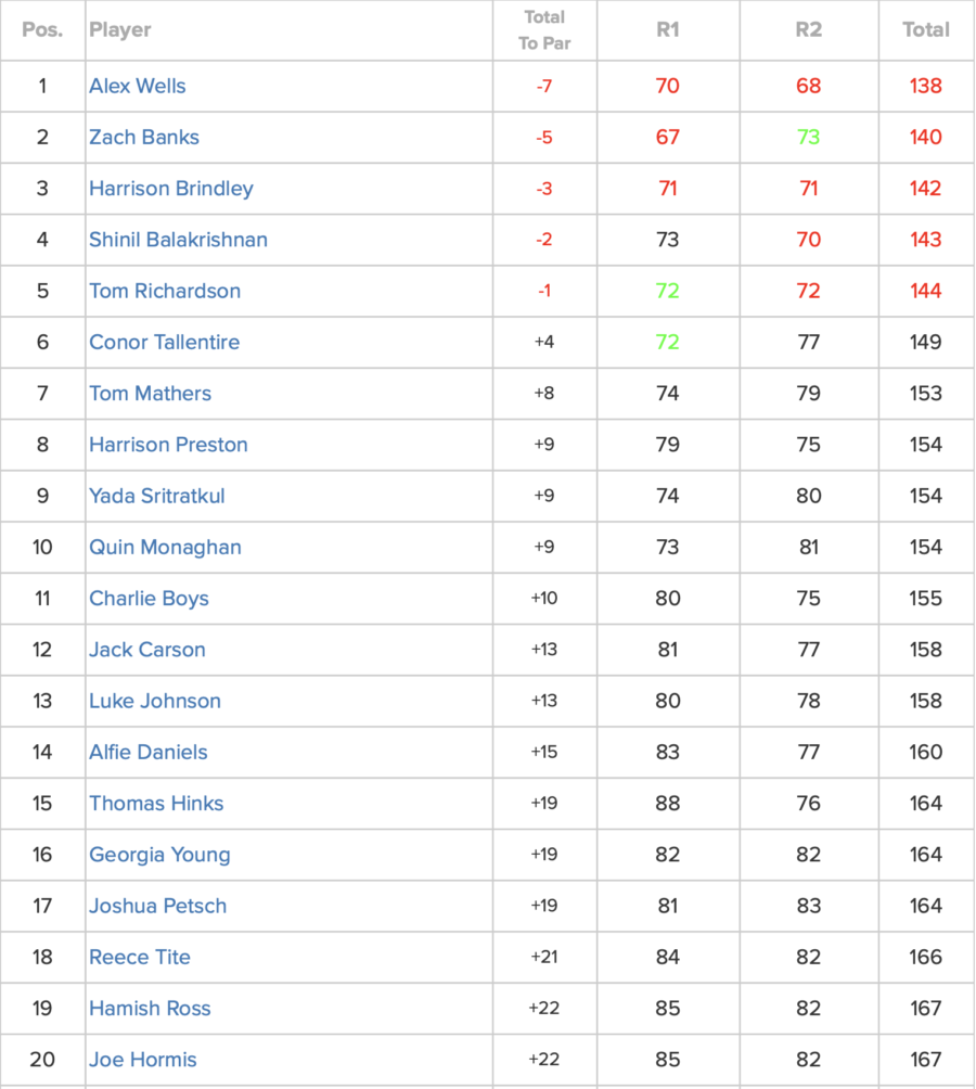 Gross winner – Alex Wells – 7 under par over the 2 days